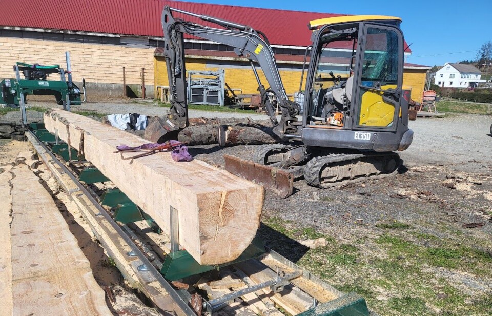 GÅRDSSAGBRUK: Her kan det sages opp til 12 meter lengder.